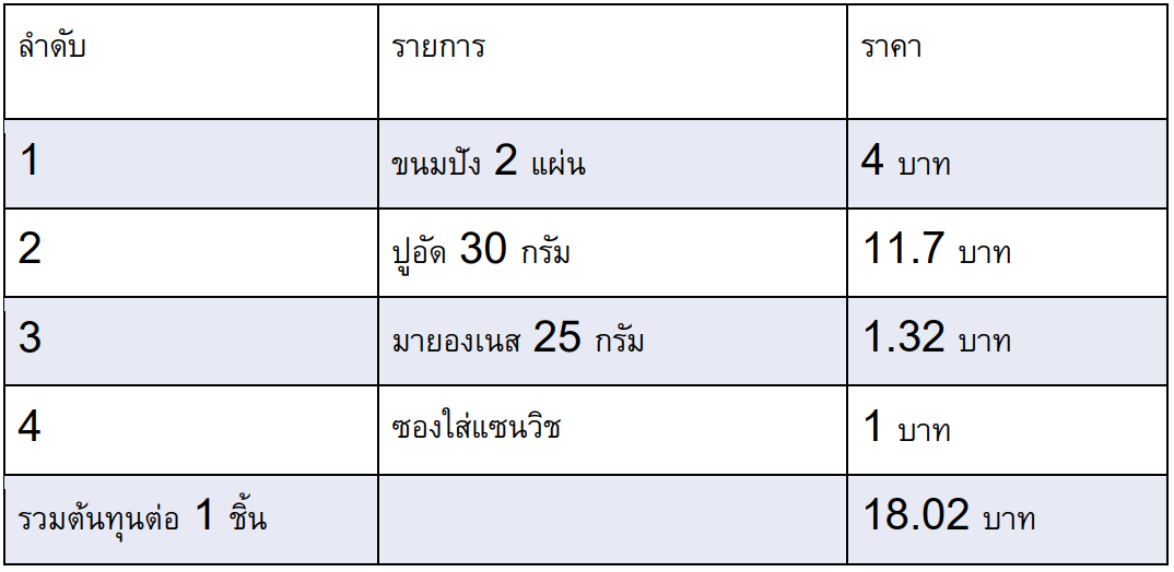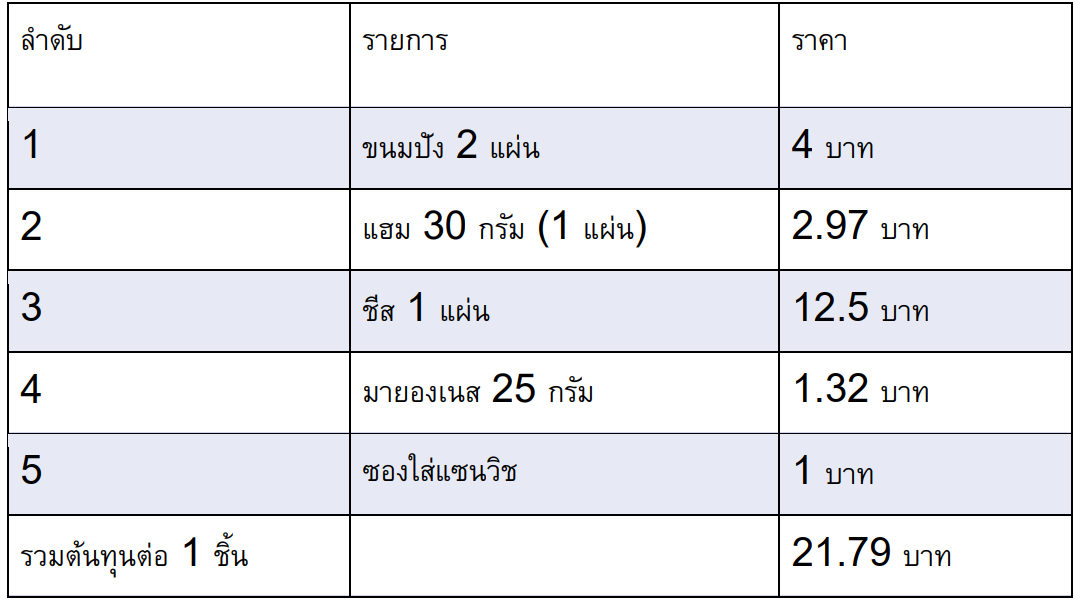 •หมายเหตุ การคิดคำนวณกำไรนี้เป็นการคิดแบบคร่าว ๆ หากต้องลงรายละเอียดจะต้องดูเรื่อง ค่าแรง ค่าพื้นที่ในการขาย ค่าวัตถุดิบที่อาจมีการลดหรือเพิ่มและค่าใช้จ่ายอื่น ๆ ด้วย