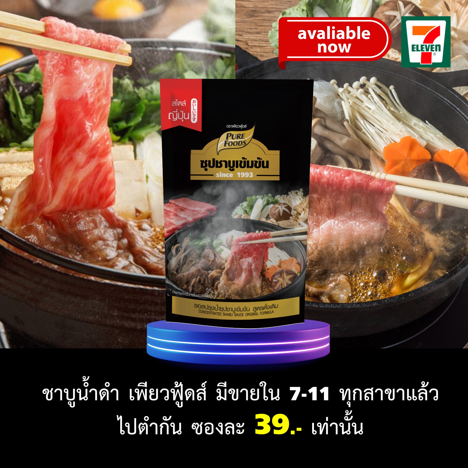 ชาบูน้ำดำเพียวฟู้ดส์ มีขายใน 7-11 ทุกสาขาแล้วววว จะทำชาบู สุกี้ แค่เดินไปเซเว่น เลือกชาบูน้ำดำซองเดียว ก็เอาอยู่ อย่าลืม ซื้อลูกชิ้น ไส้กรอก ผัก ตามชอบด้วยน้า